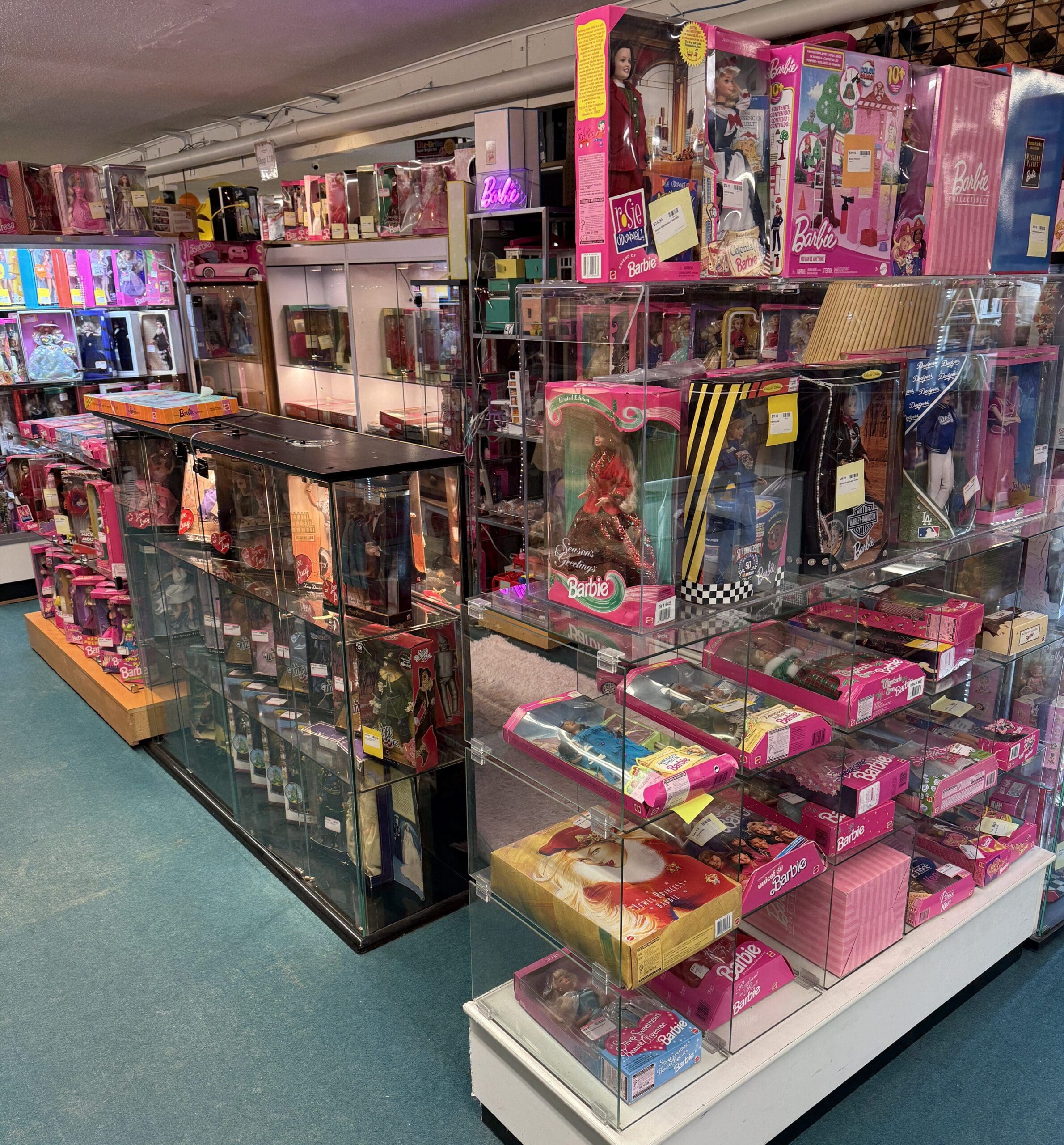 A Barbie collector event looks something like this: Seasons Greetings, Harley-Davidson, Rosie O'Donnell, and LA Dodgers editions all in original packaging, with shelves packed floor to ceiling in pink.