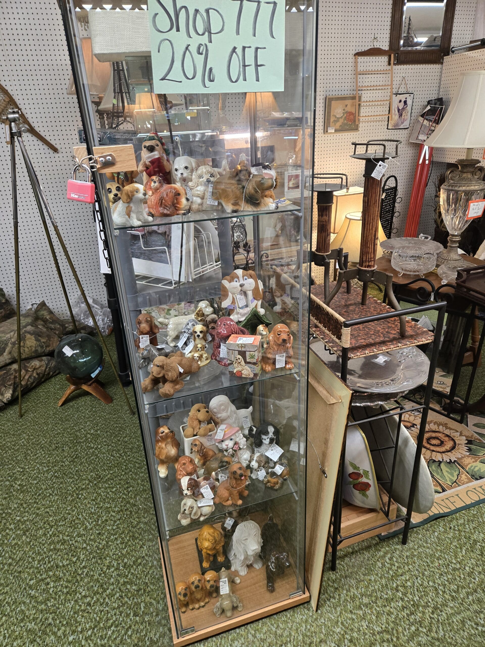 Visit Shop 777, where dog collectors will be drawn straight to a tall column packed shelf-to-shelf with ceramic and resin pups of every breed and pose. Spaniels, basset hounds, terriers, and wide-eyed puppies fill each level, from playful poses to dignified sitting portraits, all in warm browns, whites, and reds. It's one of those collections that makes you smile the moment you spot it.