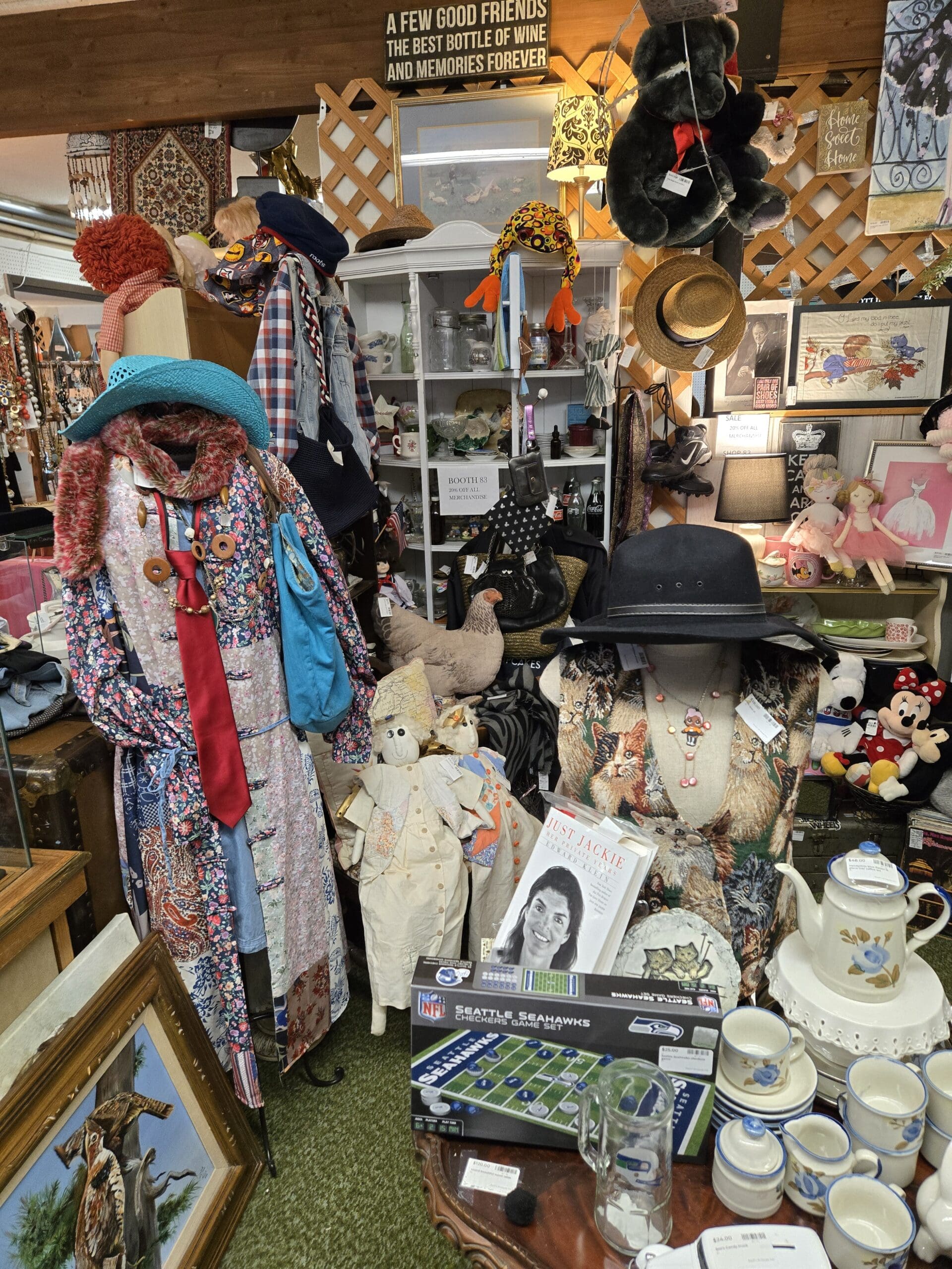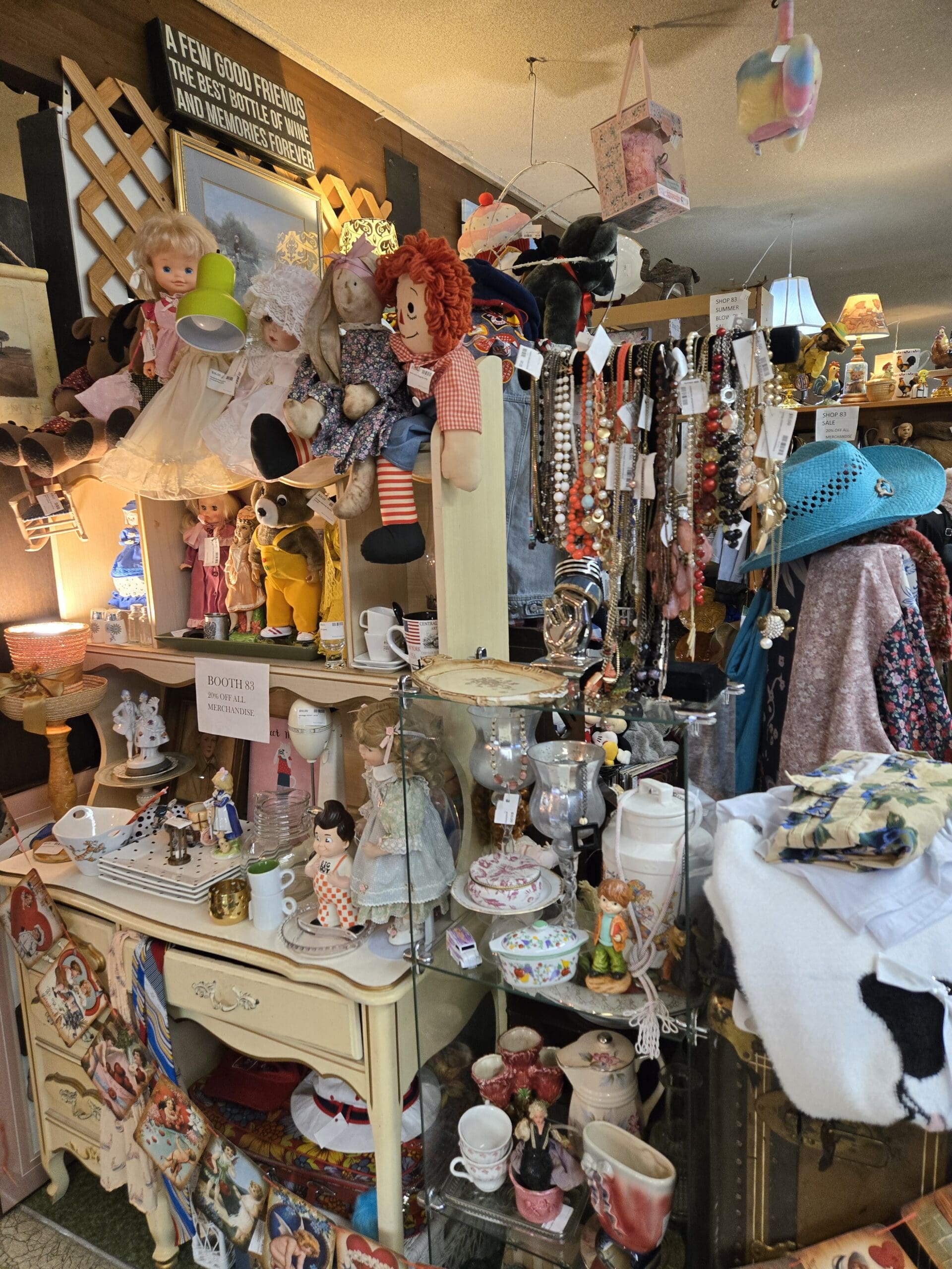 Visit Shop 83, where antique and vintage doll collecting meets retro fashion and cozy nostalgia. This Tacoma shop feels like stepping into a well-loved attic full of personality, with vintage dolls of every kind greeting you from the shelves. You'll find cloth Raggedy Ann dolls with yarn hair, porcelain-faced beauties in lace dresses, stuffed bears in costume (including an adorable teddy in a police uniform), and carved wooden figurines. Doll collectors searching for antique and vintage doll collecting finds in Tacoma will love the variety here, from character dolls and baby dolls to folk art cloth figures and international dolls in traditional dress.